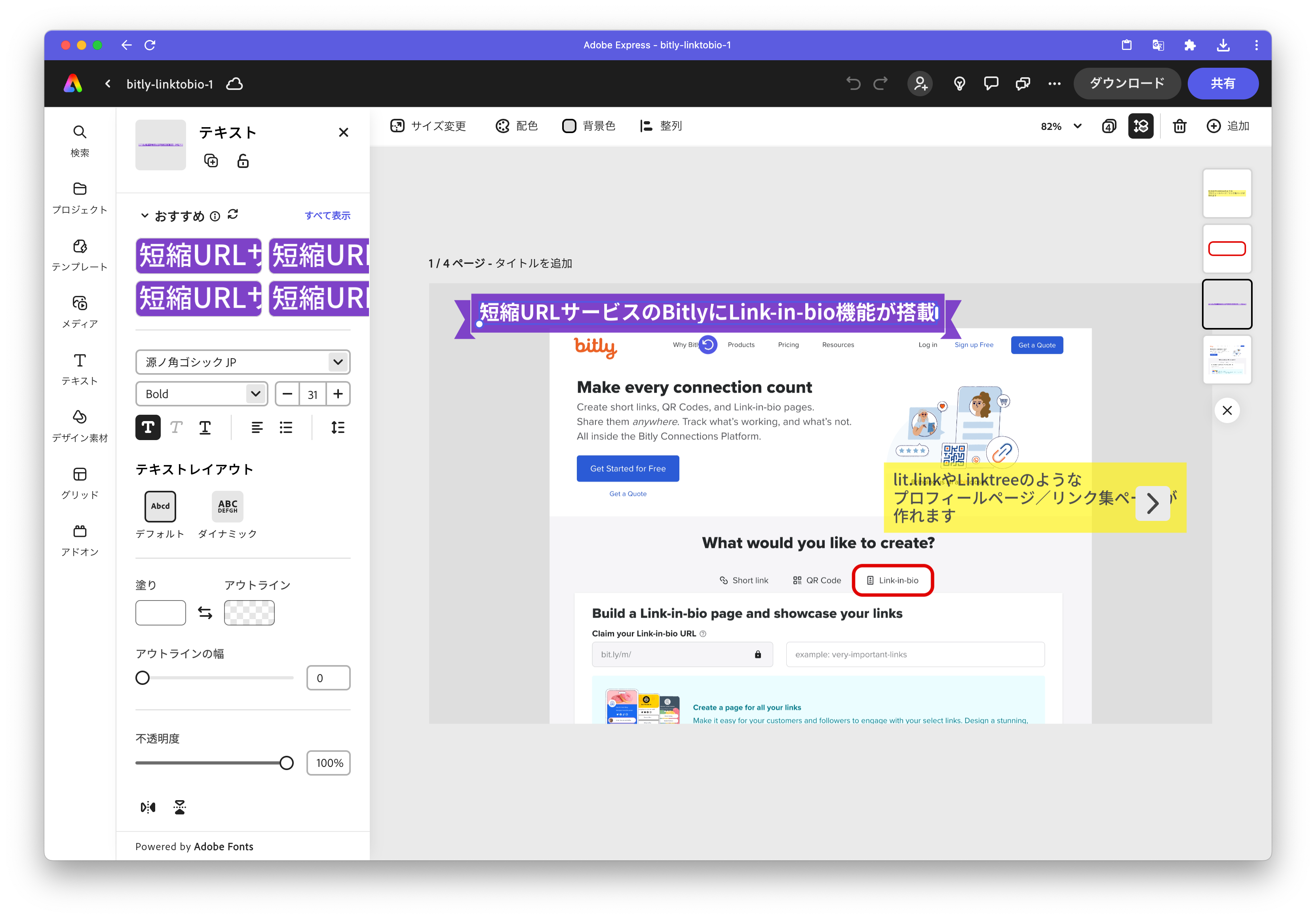 いつもはFigmaで作っている、スクリーンショット+文字を簡単にレイアウトしたSNS投稿用の画像をAdobe Expressで作ってみました。4枚の画像をセットで作ります。