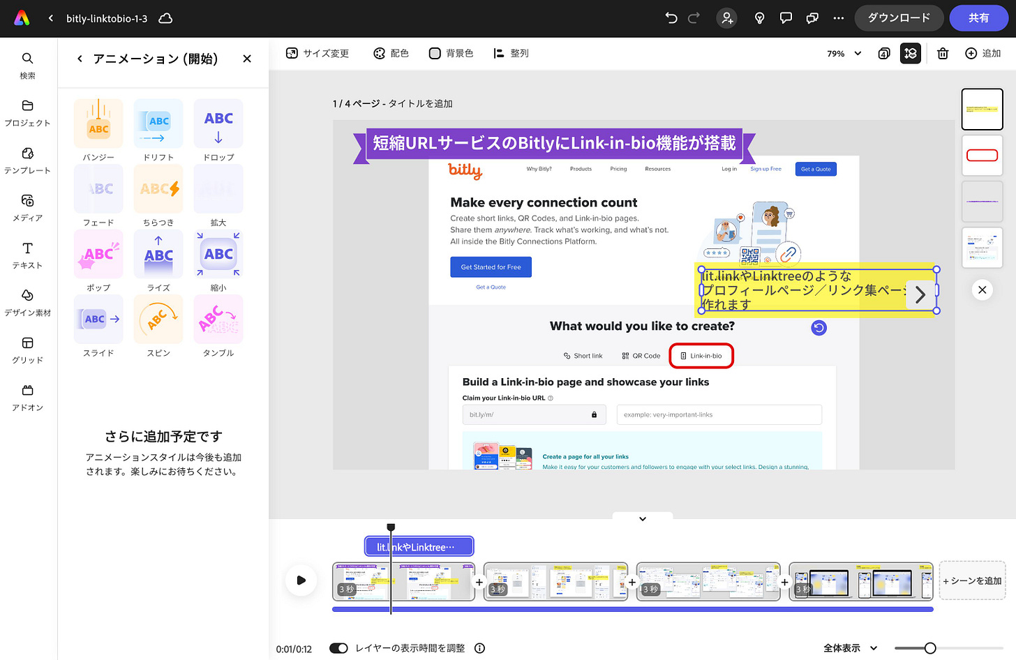以下、Canvaで作ったムービーです。