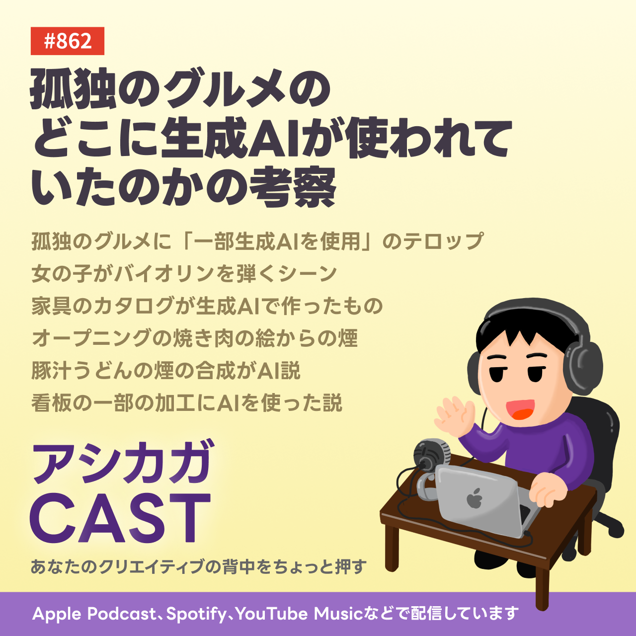 「孤独のグルメ Season11」が始まり「映像に一部、生成AIを使用しています」のテロップが話題です。生成AIを使っているんじゃないかとわたしが思う3箇所を紹介します。